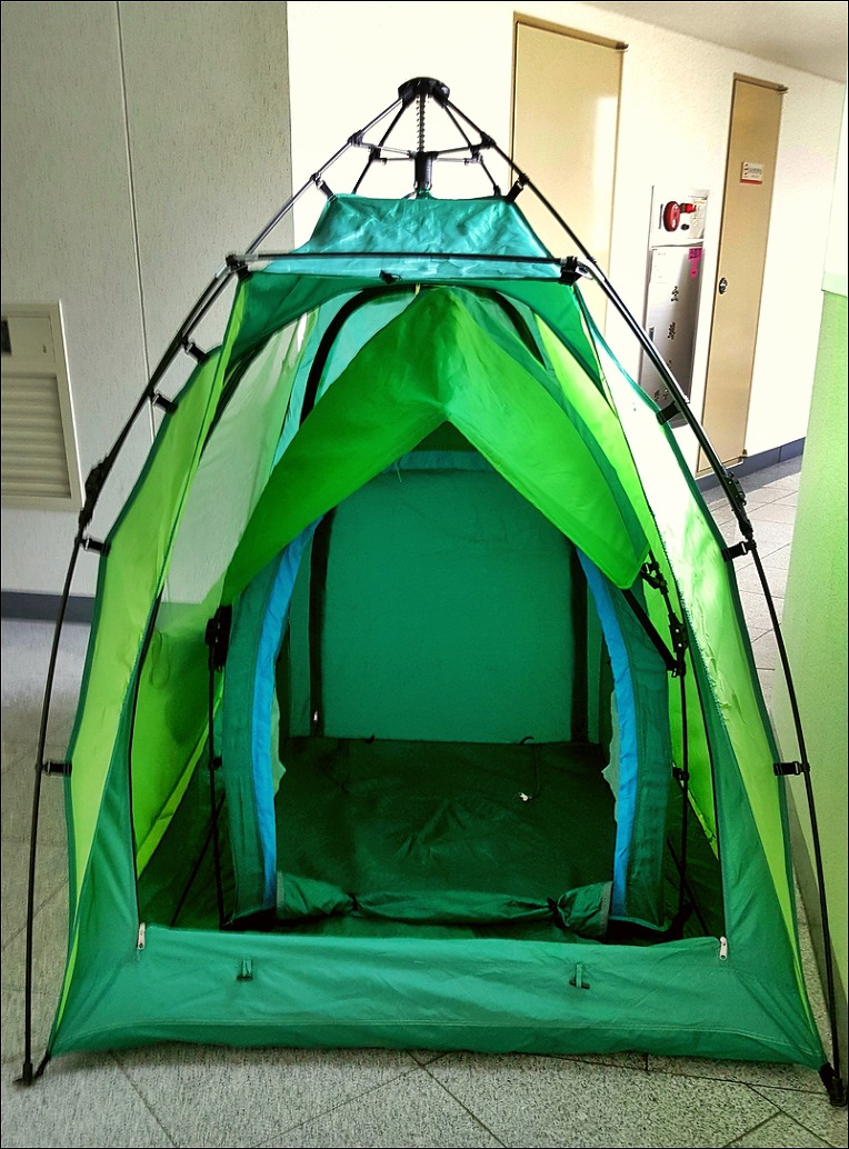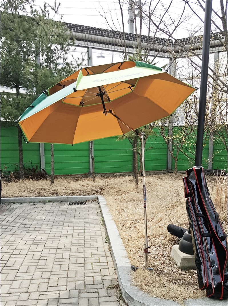 아파트 주차장에서 펼처본 호봉황토 2층 파라솔과 미라클 파라솔 각도기 A/B형