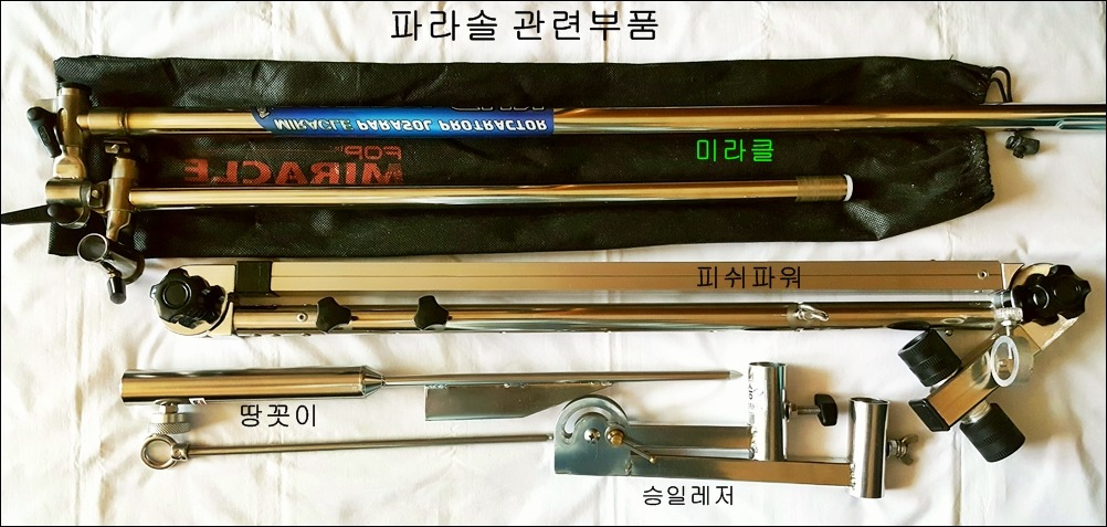 미라클 파라솔 각도기 A형 과 호봉텐트에서 소량 생산한 파라솔 땅꼿이 입니다.
